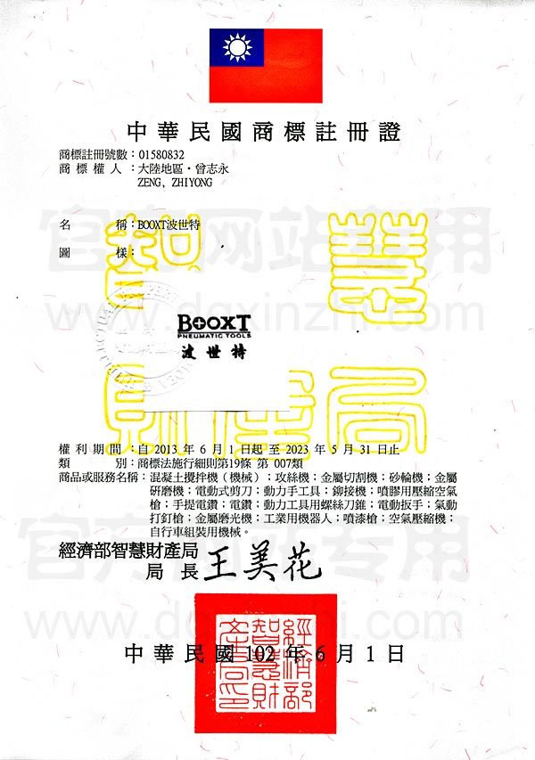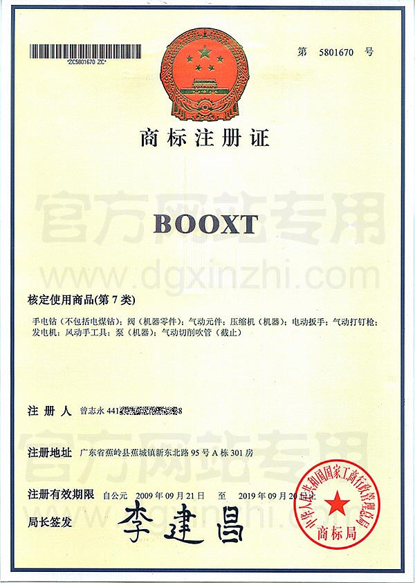 • BOOXT第7類商標(biāo)注冊證